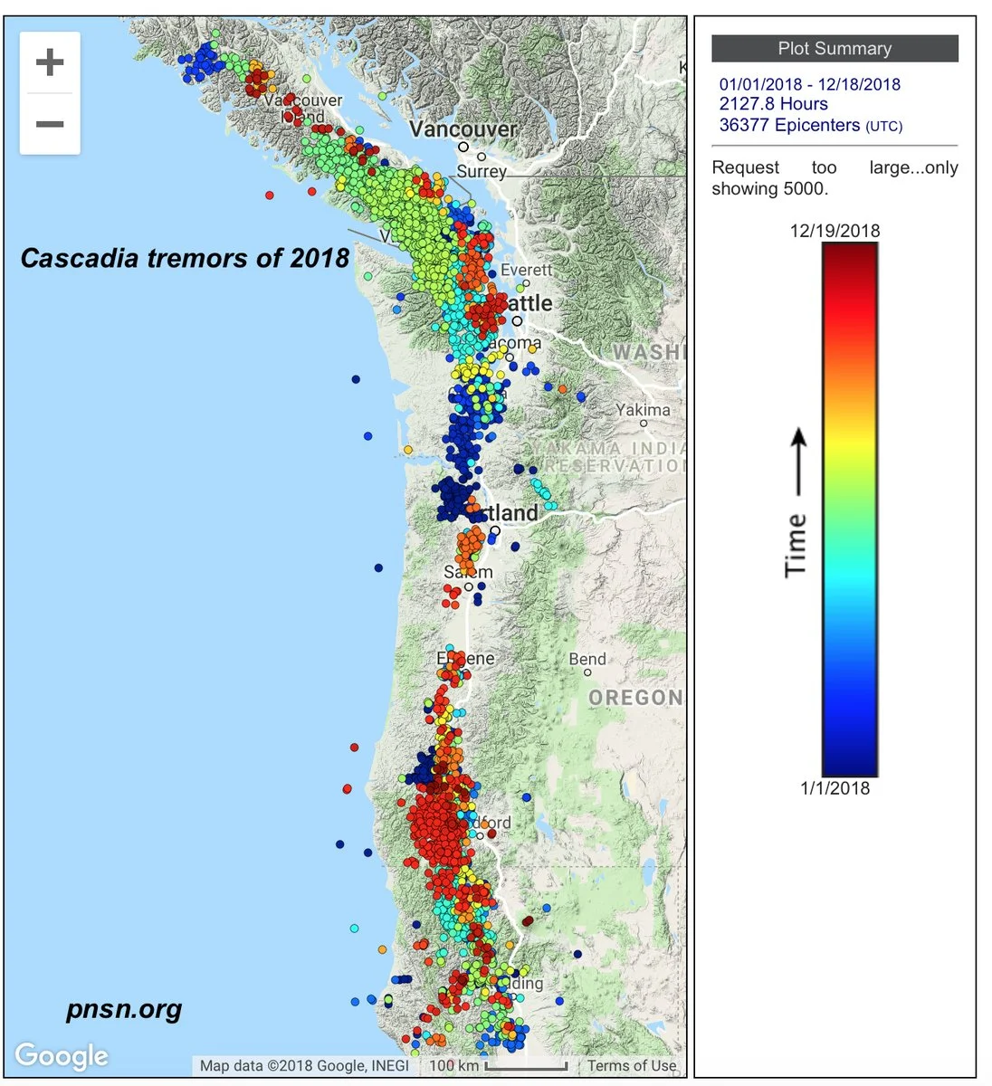 A big thank you to the Pacific Northwest Seismic Network and John Cassidy (@earthquakeguy) who made this information and map available. For more information, you can see a full history of the regions seismic activity from previous years at: https://pnsn.org/tremor/overview