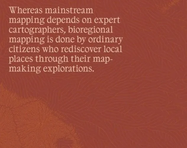 “Whereas mainstream mapping depends on expert cartographers, bioregional mapping is done by ordinary citizens who rediscover local places through their map-making explorations.”